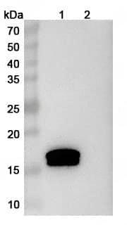 Reconstitute in sterile water for a stock solution. Adjust the volume of sterile water so that, after reconstitution, the final stock concentration matches the value indicated on the product label or datasheet. RECONSTITUTION PROTOCOL 1. Allow the product to be reconstituted and the reconstitution diluent to reach room temperature. 2. Tap or briefly centrifuge the product vial before opening to dislodge any lyophilized material that may be dispersed on the wall or cap of the vial. 3. Use the diluent and stock concentration recommended in the product datasheet. If preparing a stock concentration higher than recommended, contact Technical Service. 4. After adding the diluent, re-cap the vial and invert gently by hand or place on a slow rocking platform to allow the reconstitution diluent to coat all the surfaces inside the vial.Note: Do not mix by vortexing or by pipetting the material up and down. 5. Allow the vial to sit at room temperature with gentle agitation for at least 15 minutes before aliquotting or using. 6. Store the reconstituted material in single use aliquots in polypropylene or siliconized tubes. Aliquots of 10 μL or larger are recommended.