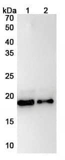 Reconstitute in sterile water for a stock solution. Adjust the volume of sterile water so that, after reconstitution, the final stock concentration matches the value indicated on the product label or datasheet. RECONSTITUTION PROTOCOL 1. Allow the product to be reconstituted and the reconstitution diluent to reach room temperature. 2. Tap or briefly centrifuge the product vial before opening to dislodge any lyophilized material that may be dispersed on the wall or cap of the vial. 3. Use the diluent and stock concentration recommended in the product datasheet. If preparing a stock concentration higher than recommended, contact Technical Service. 4. After adding the diluent, re-cap the vial and invert gently by hand or place on a slow rocking platform to allow the reconstitution diluent to coat all the surfaces inside the vial.Note: Do not mix by vortexing or by pipetting the material up and down. 5. Allow the vial to sit at room temperature with gentle agitation for at least 15 minutes before aliquotting or using. 6. Store the reconstituted material in single use aliquots in polypropylene or siliconized tubes. Aliquots of 10 μL or larger are recommended.