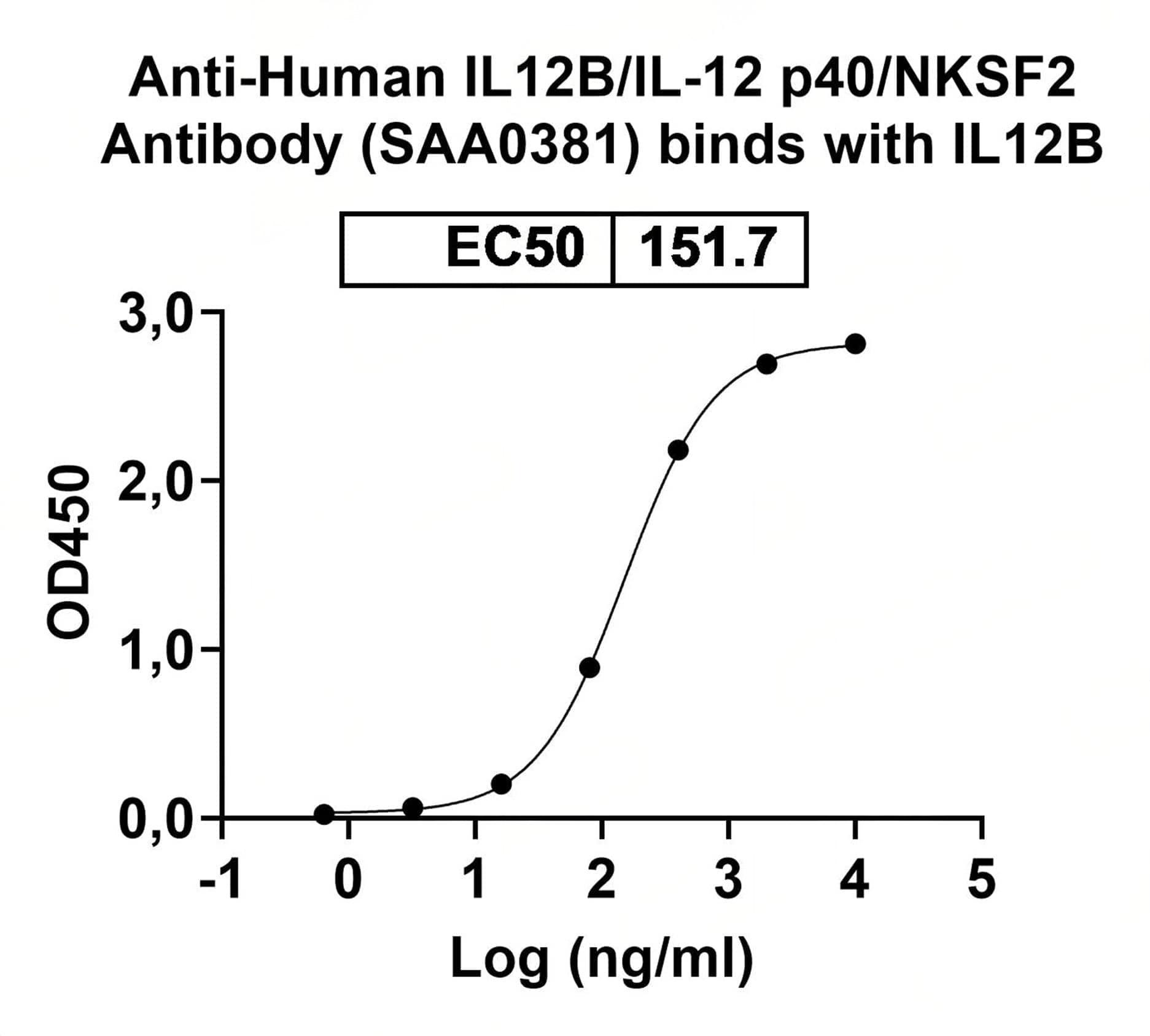SDS-PAGE for Recombinant Human IL12B/IL-12 p40/NKSF2 Protein, C-His | Detects Ustekinumab in indirect ELISAs.,Detects Briakinumab in indirect ELISAs.,Detects Anti-Human IL12B/IL-12 p40/NKSF2 Antibody (SAA0381) in indirect ELISAs.,Detected by Research Grade Ebdarokimab (Catalog No.:TD-HB769036) in indirect ELISA | Detected by Anti-IL12B/IL-12 monoclonal antibody (Catalog No.:TD-HV217026)