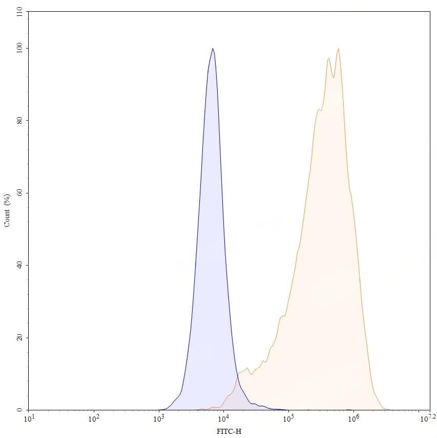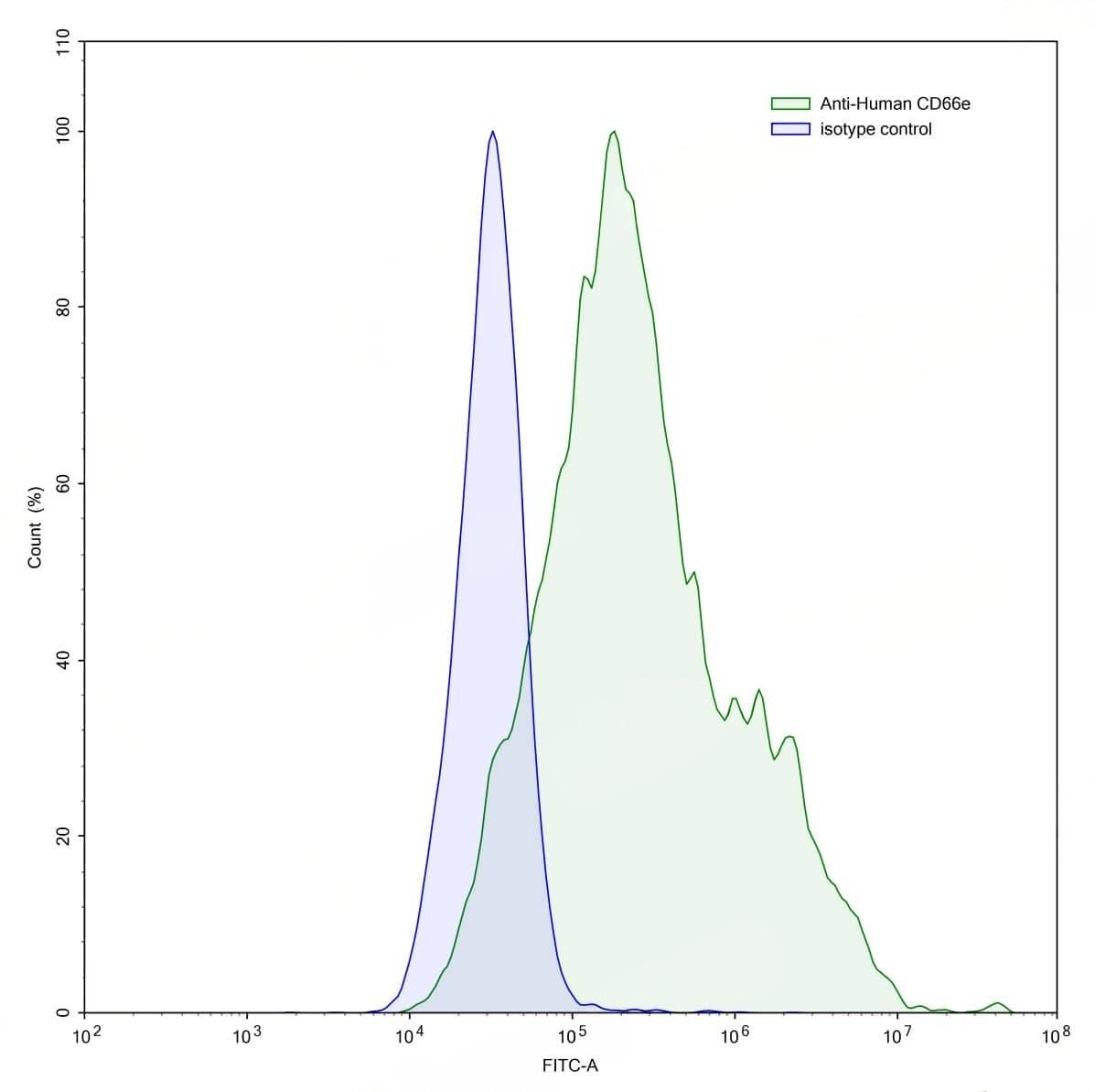 SEC-HPLC detection for Anti-Human CD66e/CEA/CEACAM5 Antibody (MN14). | Flow-cytometry using anti-human CD66e antibody.CD66e Transfected CHO cells were stained with an irrelevant antibody (Blue Histogram) or an anti-human CD66e antibody monoclonal antibody (Catalog No.:TD-HY546207 ,Green Histogram) at a concentration of 5 µg/ml for 30 mins at RT. After washing, bound antibody was detected using a FITC conjugated goat anti-human antibody (Catalog No.:TD-HF690414) and cells analysed on a NovoCyte Flow Cytometer. | Flow-cytometry using anti-human CD66e antibody.BxPC3 cells were stained with an irrelevant antibody (Blue Histogram) or an anti-human CD66e antibody monoclonal antibody (Catalog No.:TD-HY546207 ,Green Histogram) at a concentration of 5 µg/ml for 30 mins at RT. After washing, bound antibody was detected using a FITC conjugated goat anti-human antibody (Catalog No.:TD-HF690414) and cells analysed on a NovoCyte Flow Cytometer. | Flow-cytometry using anti-human CD66e antibody. HPAC cells were stained with an irrelevant antibody (Blue Histogram) or an anti-human CD66e monoclonal antibody (Catalog No.:TD-HY546207, Yellow Histogram) at a concentration of 5 µg/ml for 30 mins at RT. After washing, bound antibody was detected using a a Goat Anti-Human IgG H&L Polyclonal Antibody, FITC (Catalog No.:TD-HF690414) and cells analysed on a NovoCyte Flow Cytometer.