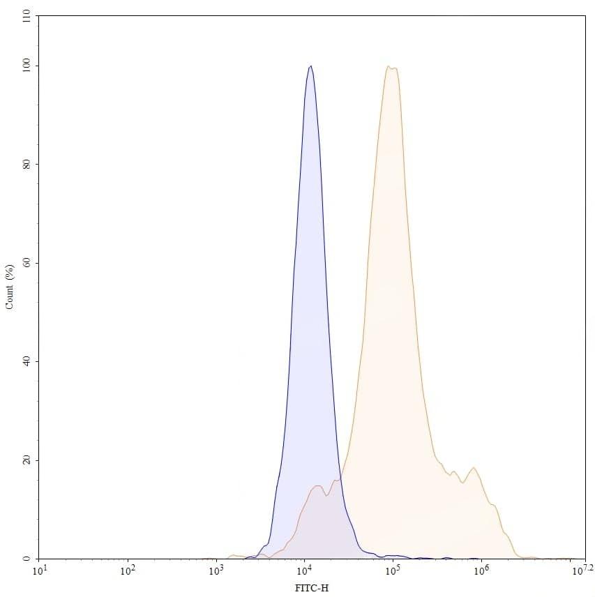 SEC-HPLC detection for Anti-Human CD66e/CEA/CEACAM5 Antibody (ABS0313). | Flow-cytometry using anti-human CD66e antibody.CD66e Transfected CHO cells were stained with an irrelevant antibody (Blue Histogram) or an anti-human CD66e antibody monoclonal antibody (Catalog No.:TD-HY546107 ,Green Histogram) at a concentration of 5 µg/ml for 30 mins at RT. After washing, bound antibody was detected using a FITC conjugated goat anti-mouse antibody (Catalog No.:TD-MF690414) and cells analysed on a NovoCyte Flow Cytometer. | Flow-cytometry using anti-human CD66e antibody. HPAC cells were stained with an irrelevant antibody (Blue Histogram) or an anti-human CD66e monoclonal antibody (Catalog No.:TD-HY546107, Yellow Histogram) at a concentration of 5 µg/ml for 30 mins at RT. After washing, bound antibody was detected using a a Goat Anti-Mouse IgG H&L Polyclonal Antibody, FITC (Catalog No.:TD-MF690414) and cells analysed on a NovoCyte Flow Cytometer.