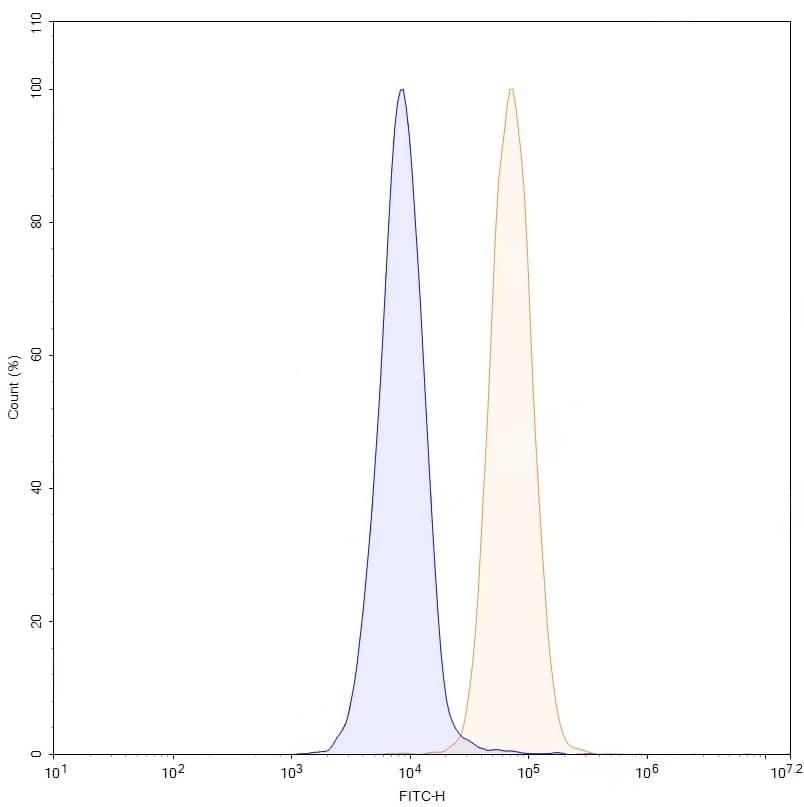 SDS-PAGE for Anti-Human CD220/INSR Antibody (SAA0334) | Flow-cytometry using anti-human CD220 antibody. MCF7 cells were stained with an irrelevant antibody (Blue Histogram) or an anti-human CD220 monoclonal antibody (Catalog No.:TD-HY112207, Yellow Histogram) at a concentration of 5 µg/ml for 30 mins at RT. After washing, bound antibody was detected using a Goat Anti-Mouse IgG H&L Polyclonal Antibody, FITC (Catalog No.:TD-MF690414) and cells analysed on a NovoCyte Flow Cytometer. | Flow-cytometry using anti-human CD220 antibody. HepG2 cells were stained with an irrelevant antibody (Blue Histogram) or an anti-human CD220 monoclonal antibody (Catalog No.:TD-HY112207, Yellow Histogram) at a concentration of 5 µg/ml for 30 mins at RT. After washing, bound antibody was detected using a Goat Anti-Mouse IgG H&L Polyclonal Antibody, FITC (Catalog No.:TD-MF690414) and cells analysed on a NovoCyte Flow Cytometer.