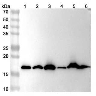 SEC-HPLC detection for Anti-Hypusine Antibody (Hpu98.61). | SDS-PAGE for Anti-Hypusine Antibody (Hpu98.61) | Western blot analysis was performed using anti-EIF5A monoclonal antibody at 1ug/mL on various samples.Lane 1:Jurkat cell lysateLane 2:Hela cell lysateLane 3:293T cell lysateLane 4:NIH3T3 cell lysateLane 5:Mouse pancears lysateLane 7:Rat pancears lysate