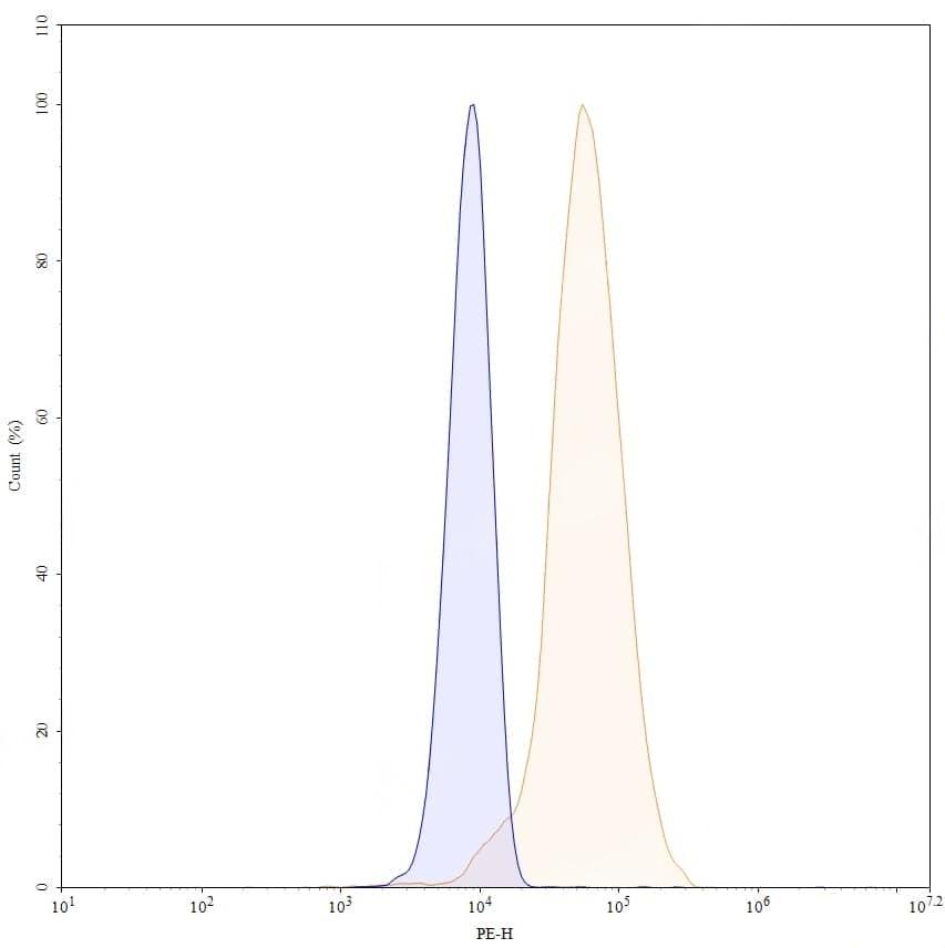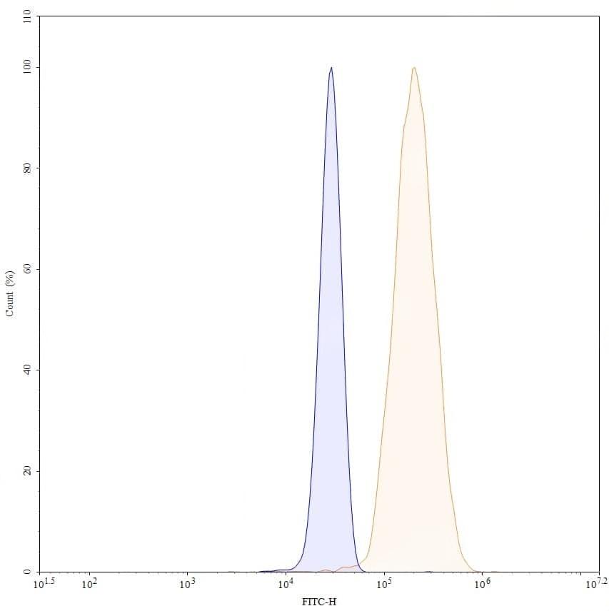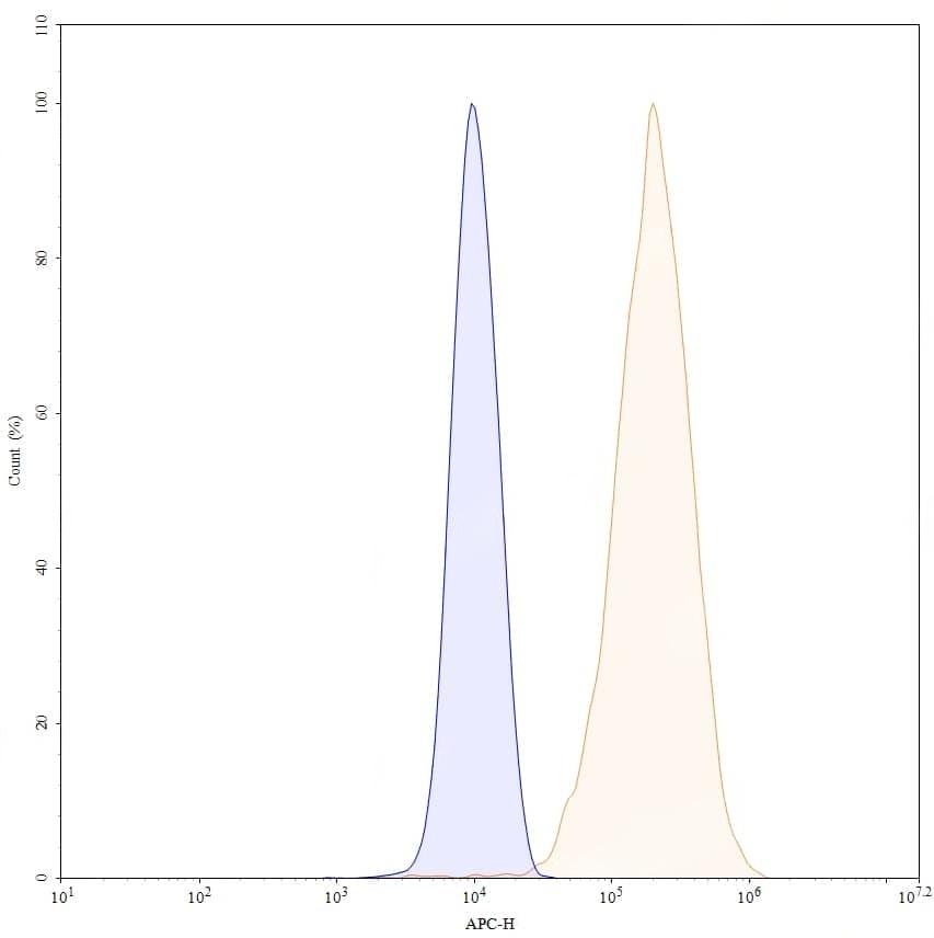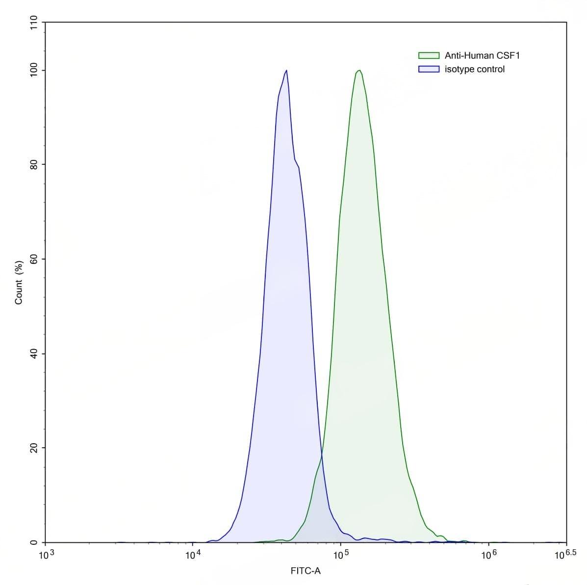 SEC-HPLC detection for InVivoMAb Anti-Human CSF1/M-CSF (ABV0114). | Flow-cytometry using anti-human CSF1 antibody.MG-63 cells were stained with an irrelevant antibody (Blue Histogram) or an anti-human CSF1 antibody monoclonal antibody (Catalog No.:TD-HY515010 ,Green Histogram) at a concentration of 5 µg/ml for 30 mins at RT. After washing, bound antibody was detected using a FITC conjugated goat anti-human antibody (Catalog No.:TD-HF690414) and cells analysed on a NovoCyte Flow Cytometer. | SDS-PAGE for InVivoMAb Anti-Human CSF1/M-CSF (Iv0052). | Flow-cytometry using FITC anti-human CSF1 antibody. MG-63 cells were fixed and permeabilized, then stained with an irrelevant antibody (Blue Histogram) or an FITC anti-human CSF1 monoclonal antibody (Catalog No.:TD-HY515010, Yellow Histogram) at a concentration of 5 µg/ml for 30 mins at RT. After washing, cells analysed on a NovoCyte Flow Cytometer.,Flow-cytometry using PE anti-human CSF1 antibody. MG-63 cells were fixed and permeabilized, then stained with an irrelevant antibody (Blue Histogram) or an PE anti-human CSF1 monoclonal antibody (Catalog No.:TD-HY515010, Yellow Histogram) at a concentration of 5 µg/ml for 30 mins at RT. After washing, cells analysed on a NovoCyte Flow Cytometer.,Flow-cytometry using APC anti-human CSF1 antibody. MG-63 cells were fixed and permeabilized, then stained with an irrelevant antibody (Blue Histogram) or an APC anti-human CSF1 monoclonal antibody (Catalog No.:TD-HY515010, Yellow Histogram) at a concentration of 5 µg/ml for 30 mins at RT. After washing, cells analysed on a NovoCyte Flow Cytometer.