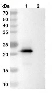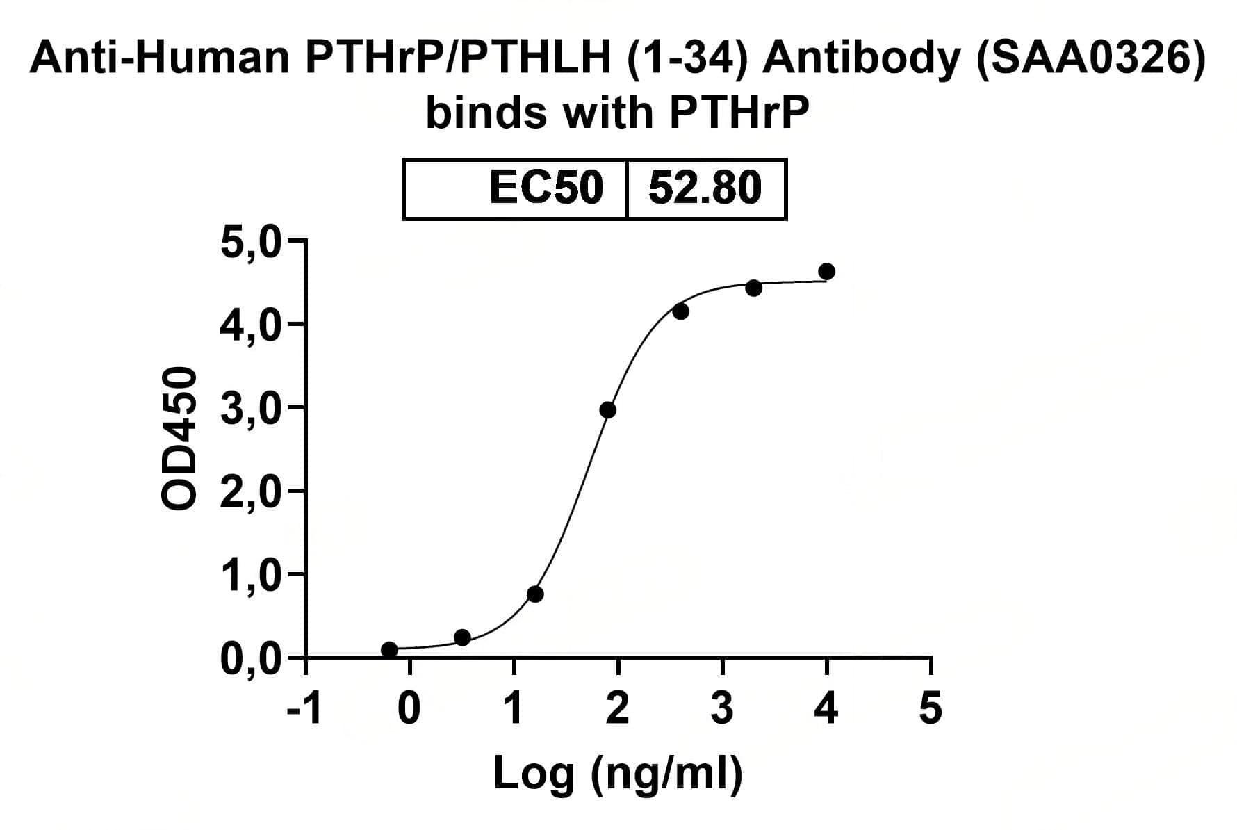 Detects recombinant human PTHLH (Catalog No.:TD-HY340022) in indirect ELISA. | SDS-PAGE for Anti-Human PTHrP/PTHLH (1-34) Antibody (SAA0326). | Western blot analysis was performed using anti-PTHLH monoclonal antibody at 1ug/mL on various samples.Lane 1:recombinant human PTHLH (Catalog No.:TD-HY340022)Lane 2:negative control