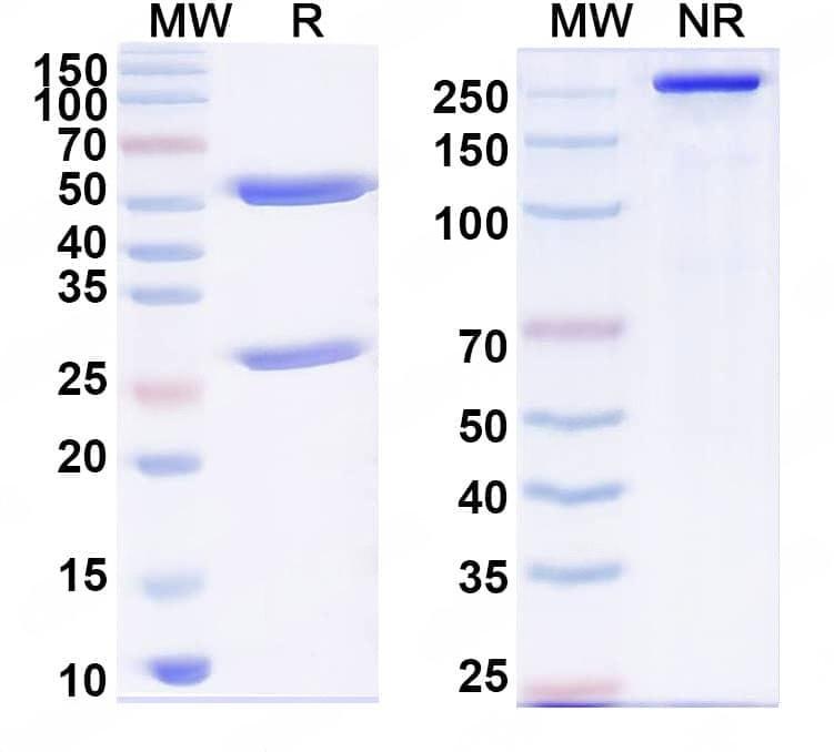 SEC-HPLC detection for Anti-Human CD56/NCAM1 Antibody (ABS0338). | SDS-PAGE for Anti-Human CD56/NCAM1 Antibody (SAA2007). | Western blot analysis was performed using anti-CD56/NCAM1 monoclonal antibody at 1μg/ml on various samples.Lane 1:recombinant human CD56/NCAM1 (Catalog No.:TD-HY309011), 50ngLane 2:recombinant human CD56/NCAM1 (Catalog No.:TD-HY309011), 30ngLane 3:recombinant human CD56/NCAM1 (Catalog No.:TD-HY309011), 20ng
