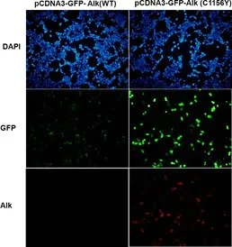Immunofluorescence of cells expressing ALK proteins with Anti-ALK(C1156Y) antibody.