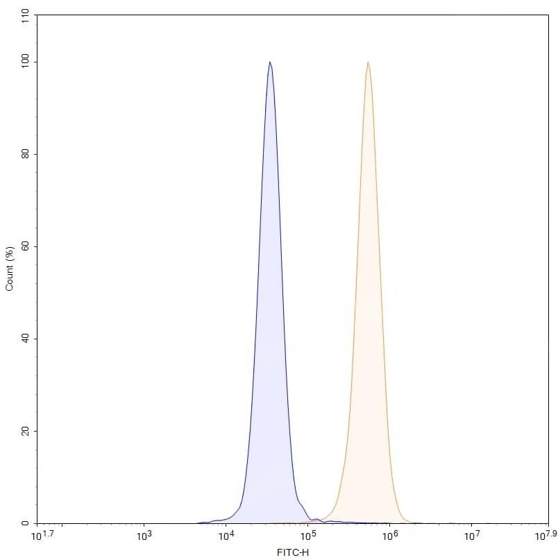 SDS-PAGE for Anti-Human ZNF408 IP Antibody (SAA0241). | Flow-cytometry using anti-human ZNF408 antibody. Hela cells were stained with an irrelevant antibody (Blue Histogram) or an anti-human ZNF408 monoclonal antibody (Catalog No.:TD-HP633013, Yellow Histogram) at a concentration of 5 µg/ml for 30 mins at RT. After washing, bound antibody was detected using a Goat Anti-Mouse IgG H&L Polyclonal Antibody, FITC (Catalog No.:TD-MF690414) and cells analysed on a NovoCyte Flow Cytometer.