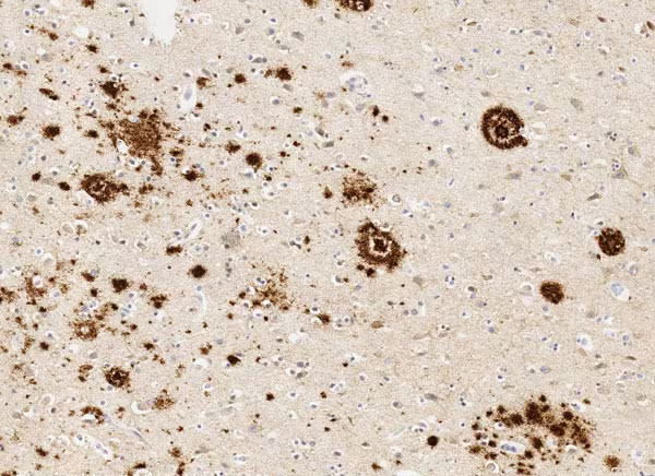 beta Amyloid (Aß) 1-42 IHC-P: FFPE human Alzheimer hippocampus tissue sections. |