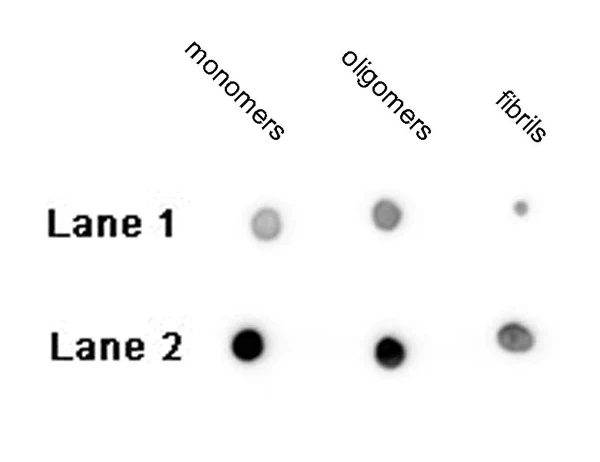 This antibody recognizes monomeric, oligomeric and fibrillar forms of beta Amyloid 1-42 peptide and reacts weakly with beta Amyloid 1-40. |