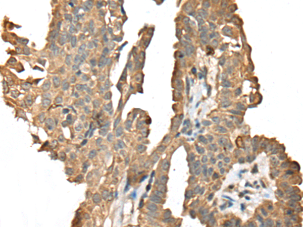 The image is immunohistochemistry of paraffin-embedded Human thyroid cancer tissue using P09453(CD247 Antibody) at dilution 1/30. (Original magnification: ×200)