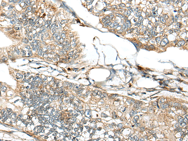 The image is immunohistochemistry of paraffin-embedded Human gastric cancer tissue using P09453(CD247 Antibody) at dilution 1/30. (Original magnification: ×200)