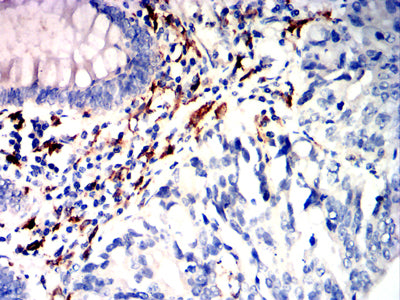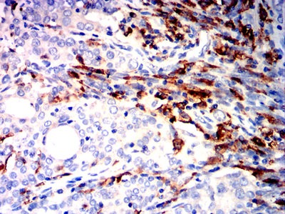 Immunohistochemical analysis of paraffin-embedded human cervical cancer tissues using CD206 mouse mAb with DAB staining.