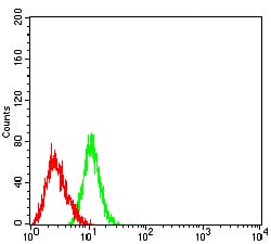 Flow cytometric analysis of HL-60 cells using CD170 mouse mAb (green) and negative control (red).