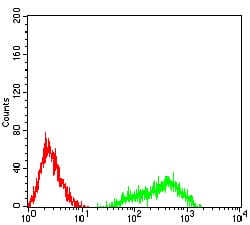 Flow cytometric analysis of HL-60 cells using CD169 mouse mAb (green) and negative control (red).