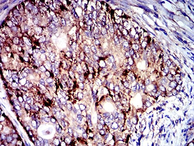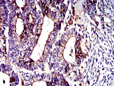 Immunohistochemical analysis of paraffin-embedded human lung cancer tissues using CD107b mouse mAb with DAB staining.