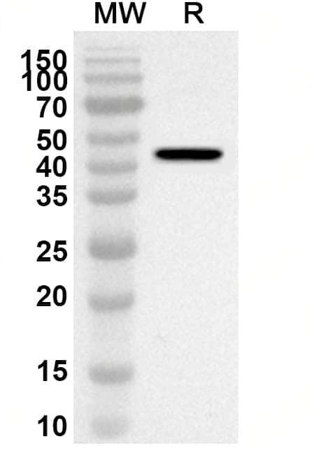 Western blot analysis was performed using anti-SLEV NS1/Non-structural protein 1 polyclonal antibody at 1ug/mL on recombinant SLEV NS1/Non-structural protein 1 (Catalog No.:TD-VK793012).