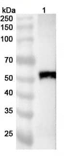 Western blot analysis was performed using anti-S1 polyclonal antibody at 1ug/mL on various samples.Lane 1:recombinant IBV S1/Spike glycoprotein 1 (Catalog No:TD-VK710012)