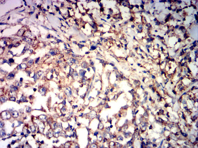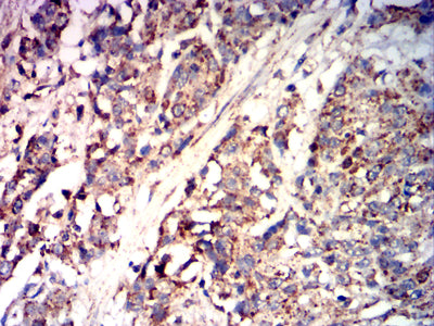 Immunohistochemical analysis of paraffin-embedded human esophageal cancer tissues using CD85K mouse mAb with DAB staining.