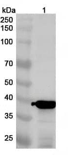 Western blot analysis was performed using anti-F-PIV5 polyclonal antibody at 1ug/mL on various samples.Lane 1:recombinant PIV5 F/Fusion glycoprotein F0 (Catalog No:TD-VK583012)