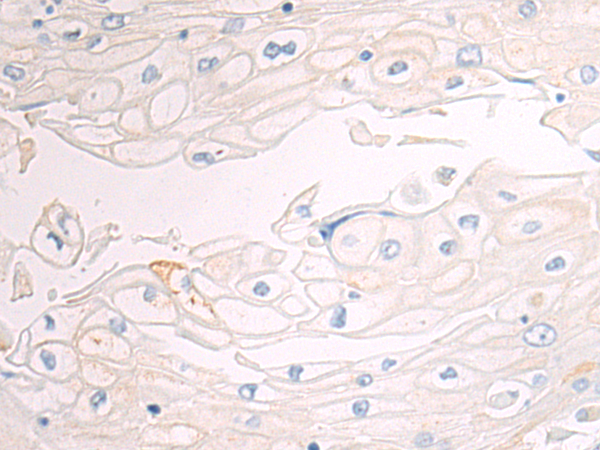 The image is immunohistochemistry of paraffin-embedded Human esophagus cancer tissue using P05527(CD70 Antibody) at dilution 1/50. (Original magnification: ×200)