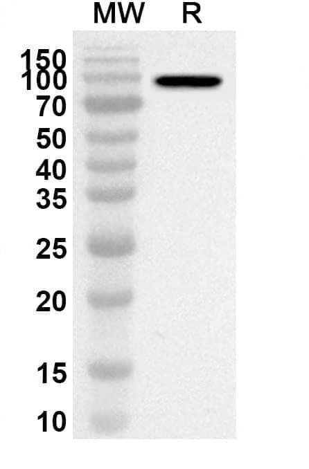 Western blot analysis was performed using anti-CSFV NS5B polyclonal antibody at 1ug/mL on recombinant CSFV NS5B (Catalog No.:TD-VK463012).