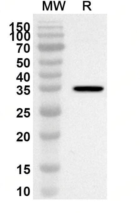 Western blot analysis was performed using anti-Prunus dulcis Prunin 2/Pru du 6 polyclonal antibody at 1ug/mL on recombinant Prunus dulcis Prunin 2/Pru du 6 (Catalog No.:TD-PR106012).