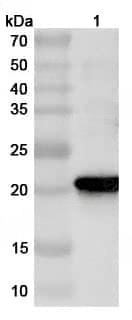 Western blot analysis was performed using anti-Mugwort Art v 1 polyclonal antibody at 1ug/mL on recombinant Mugwort Art v 1 (Catalog No.:TD-PR102012).,Western blot analysis was performed using anti-ARTV1 polyclonal antibody at 1ug/mL on various samples.Lane 1:recombinant Artemisia vulgaris Artv1 (Catalog No:TD-PR102012)