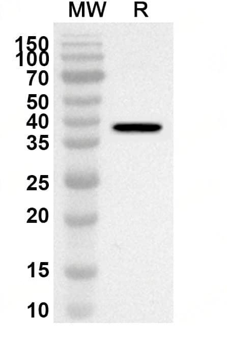 Western blot analysis was performed using anti-Mouse CD79α/CD79A polyclonal antibody at 1ug/mL on recombinant Mouse CD79α/CD79A (Catalog No.:TD-MY570012).