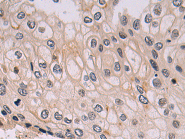 The image is immunohistochemistry of paraffin-embedded Human cervical cancer tissue using P06890(CD52 Antibody) at dilution 1/50. (Original magnification: ×200)