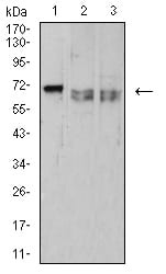| Glycoprotein Ib (GP Ib) is a platelet surface membrane glycoprotein composed of a heterodimer, an alpha chain and a beta chain, that is linked by disulfide bonds. The Gp Ib functions as a receptor for von Willebrand factor (VWF). The complete receptor complex includes noncovalent association of the alpha and beta subunits with platelet glycoprotein IX and platelet glycoprotein V. The binding of the GP Ib-IX-V complex to VWF facilitates initial platelet adhesion to vascular subendothelium after vascular injury, and also initiates signaling events within the platelet that lead to enhanced platelet activation, thrombosis, and hemostasis. This gene encodes the alpha subunit. Mutations in this gene result in Bernard-Soulier syndromes and platelet-type von Willebrand disease. The coding region of this gene is known to contain a polymophic variable number tandem repeat (VNTR) domain that is associated with susceptibility to nonarteritic anterior ischemic optic neuropathy. |