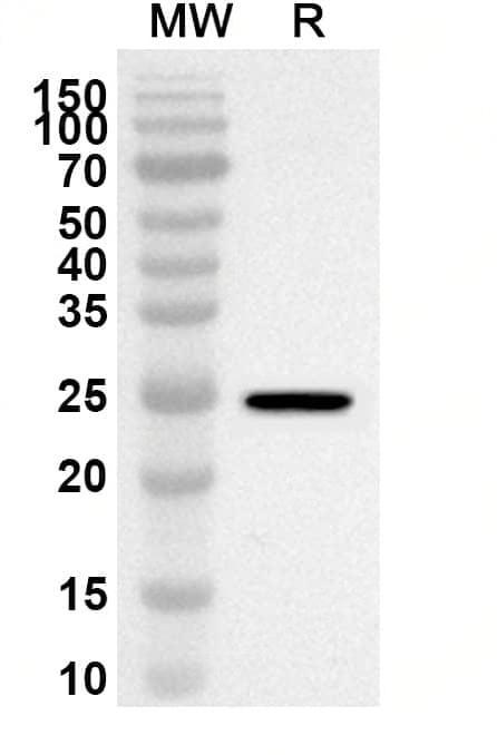 Western blot analysis was performed using anti-Mouse CCL17/TARC polyclonal antibody at 1ug/mL on recombinant Mouse CCL17/TARC (Catalog No.:TD-MV615012).