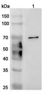 Western blot analysis was performed using anti-CD244 polyclonal antibody at 1ug/mL on various samples.Lane 1:MCF-7 cell lysate