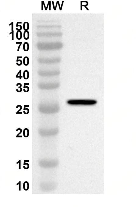 Western blot analysis was performed using anti-Mouse KLK5 polyclonal antibody at 1ug/mL on recombinant Mouse KLK5 (Catalog No.:TD-MP212012).