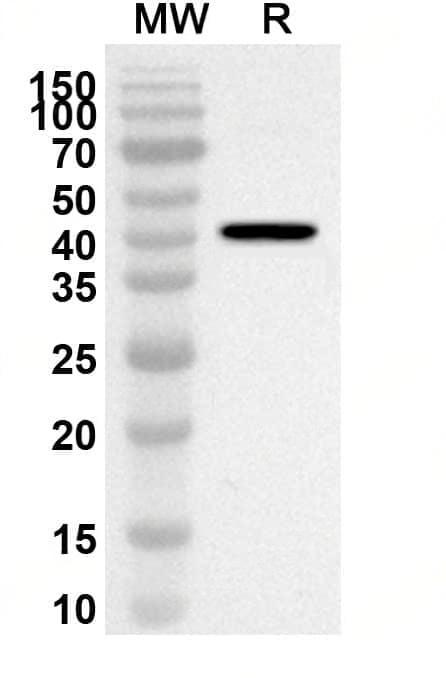 Western blot analysis was performed using anti-Mouse CD8A polyclonal antibody at 1ug/mL on recombinant Mouse CD8A (Catalog No.:TD-MF815012).