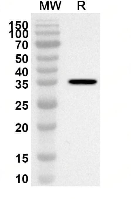 Western blot analysis was performed using anti-Mouse IGFBP4 polyclonal antibody at 1ug/mL on recombinant Mouse IGFBP4 (Catalog No.:TD-MB140012).