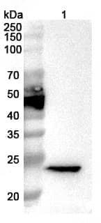 Western blot analysis was performed using anti-CRISP4 polyclonal antibody at 1ug/mL on various samples.Lane 1:Mouse testis lysate