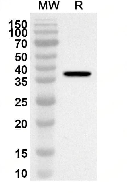 Western blot analysis was performed using anti-Mouse EDA2R polyclonal antibody at 1ug/mL on recombinant Mouse EDA2R (Catalog No.:TD-MA151012).