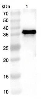 Western blot analysis was performed using anti-Staphylococcus aureus lukF-PV polyclonal antibody at 1ug/mL on recombinant Staphylococcus aureus lukF-PV (Catalog No.:TD-JN960012).,Western blot analysis was performed using anti-LUKF polyclonal antibody at 1ug/mL on various samples.Lane 1:recombinant Staphylococcus aureus lukF-PV (Catalog No:TD-JN960012)