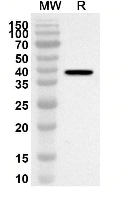 Western blot analysis was performed using anti-Malassezia furfur Mal f 1/Allergen Pit o 1/Mala s 1 polyclonal antibody at 1ug/mL on recombinant Malassezia furfur Mal f 1/Allergen Pit o 1/Mala s 1 (Catalog No.:TD-JN952012).