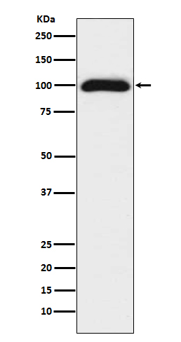Calculated MW: 57 kDa; Obs/erved MW: 100 kDa