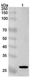 Western blot analysis was performed using anti-PTTG1 polyclonal antibody at 1ug/mL on various samples.Lane 1:Daudi cell lysate