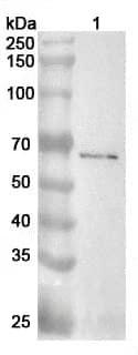 Western blot analysis was performed using anti-F2 polyclonal antibody at 1ug/mL on various samples.Lane 1:HepG2 cell lysate
