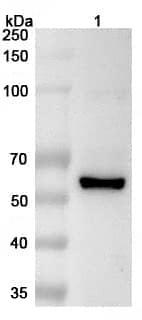 Western blot analysis was performed using anti-USP2 polyclonal antibody at 1μg/ml on various samples.Lane 1:NIH3T3 cell lysate