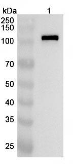 Western blot analysis was performed using anti-Human NFATC3 polyclonal antibody at 1ug/mL on recombinant Human NFATC3 (Catalog No.:TD-HC645012).,Western blot analysis was performed using anti-NFATC3 polyclonal antibody at 1ug/mL on various samples.Lane 1:Raji cell lysate
