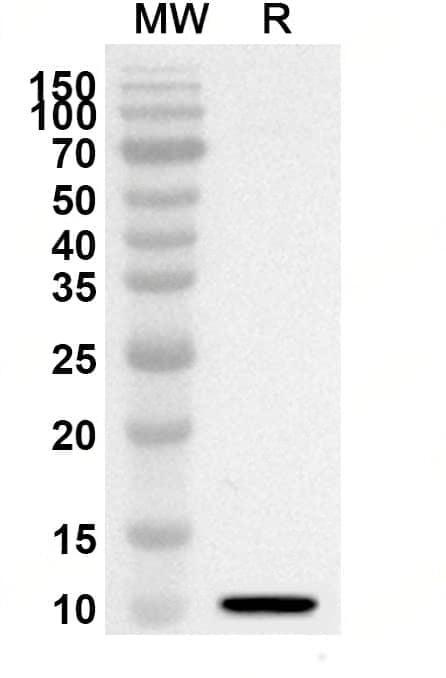 Western blot analysis was performed using anti-CXCL2/GRO-beta/MIP2-alpha polyclonal antibody at 1ug/mL on recombinant CXCL2/GRO-beta/MIP2-alpha (Catalog No.:TD-HB899012).