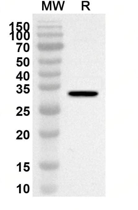 Western blot analysis was performed using anti-CD66b/CEACAM8 polyclonal antibody at 1ug/mL on recombinant CD66b/CEACAM8 (Catalog No.:TD-HB202012).