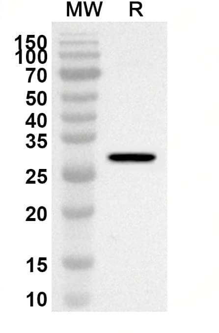 Western blot analysis was performed using anti-LGALS3 polyclonal antibody at 1ug/mL on recombinant LGALS3 (Catalog No.:TD-HB167012).