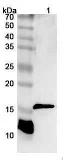 Western blot analysis was performed using anti-CD247 polyclonal antibody at 1ug/mL on various samples.Lane 1:Jurkat cell lysate