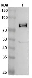 Western blot analysis was performed using anti-IDS polyclonal antibody at 1ug/mL on various samples.Lane 1:Mouse brain lysate